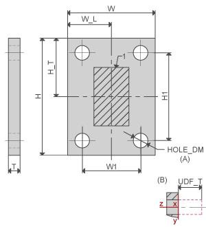 ENDPLATE | | Profile top Attach face | H,H_T,H1 W,W_L,W1 T No. of point rows No. of point columns, HOLE DM, UDF_T |