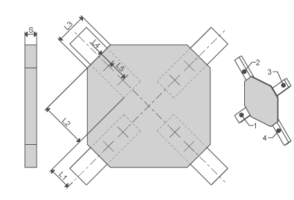 BRACING PLATE CROSS | ![]() | Bracing profile side 1 Bracing profile side 2 Bracing profile side 3 Bracing profile side 4 | S L1, L2, L3, L4, L5 |