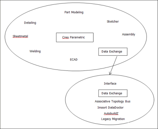 可以使用直接数据交换和符合工业标准的转换器,通过向 Creo 应用程序导入几何以及从 Creo 应用程序导出几何来共享和重新使用工程数据。Creo 应用程序具有用于 ACIS、Adobe Illustrator、AutoDesk Inventor、CADDS 5、CATIA、CDRS、ICEM、JT、Neutral、Optegra、Rhinoceros、Parasolid、PDF、MEDUSA (3D ASCII format)、NX、SolidWorks 和 AutoCAD DXF/DWG 的直接的几何转换器。