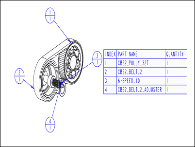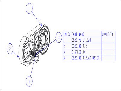 BOM 球标通常会显示一个与表中的零件名称相对应的索引号码。索引号的报告符号为 rpt.index。零件名称的报告符号为 asm.mbr.name。