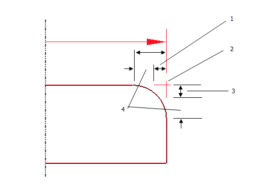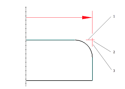 可为具有“相交”类型参考的尺寸的每条尺寸界线显示各个相交尺寸界线。相交尺寸界线的默认长度是相交图元端点与交点之间的距离减去详细信息选项 witness_line_offset 的值,如下图所示: