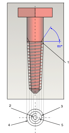 下图是叠加在细节模型上、显示为同心圆的锥形螺纹轴的简化表示: