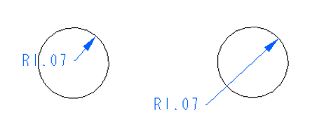 在放置半径尺寸的过程中,箭头显示取决于指针位置。