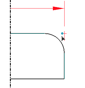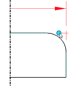 使用指针选择相交尺寸界线的控制滑块。指针将变为下图所示的点: