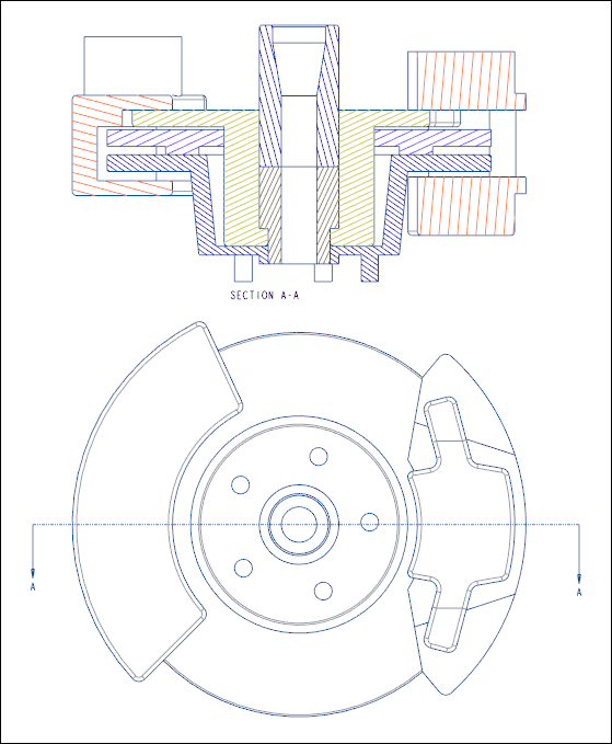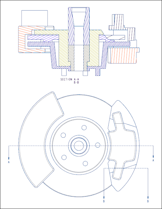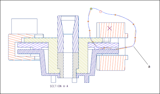 8. 在“绘图视图”(Drawing View) 对话框中,单击“应用”(Apply)。横截面 "A" 的完整剖切区域即被添加。