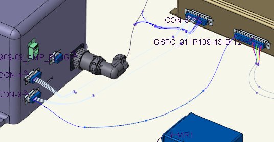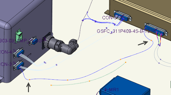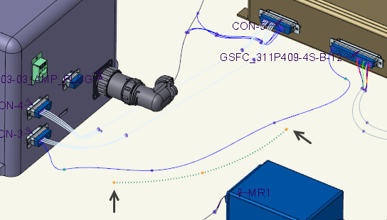 3. 在“模型树”或图形窗口中选择带有已修改逻辑数据的缆,右键单击并从快捷菜单中选取“布线”(Route)。缆布线已更新到新的入口端。
