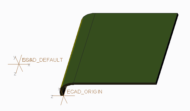 当您创建第一个板段时,默认会创建包含 3 个基准平面和 ECAD_ORIGIN 坐标系的一组电路板基准。ECAD_ORIGIN 坐标系会在电路板左下角的底部曲面上创建。所有的协作和导出任务均参考此坐标系。