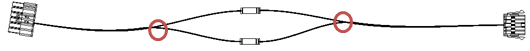 • 如果手动插入接头但未在逻辑上添加,则线在模型树中的显示可能不完整。HMX 不会处理不完整的线。将电气连接器参数类型从 SPLICE 更改为 CONNECTOR 并重新生成,即可使线完整显示。