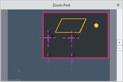 您可以使用缩放端口窗口更轻松地浏览较大的布局。打开缩放端口时,整个设计将显示在一个单独的窗口中,并将当前视图包含在一个框中。可在缩放端口窗口中移动框,以在图形窗口中更改视图。