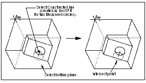 The following illustration shows creating an Intersect Constructed point at the intersection of a line with a plane.