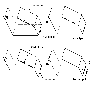 The next illustration shows creating an Intersect Constructed point when the reference lines are not coplanar.