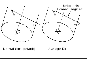 ◦ Average Dir—Approach or pull out in the direction average between the surface normals at the Measured points corresponding to the endpoints of a selected segment (see illustration below).