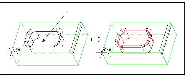 2. To define the second Top Round feature correctly, you have to create the Pocket feature first, as shown in the following illustration. Select the bottom of the pocket (2) as the Floor surface.