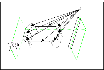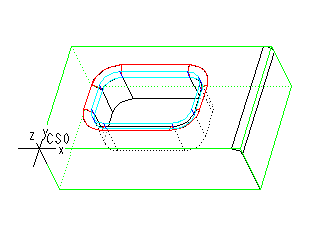 The model in this example has two Top Round features: one consists of a single rounded edge, open on both ends, and the other is a closed loop of rounded edges located on top of a pocket.