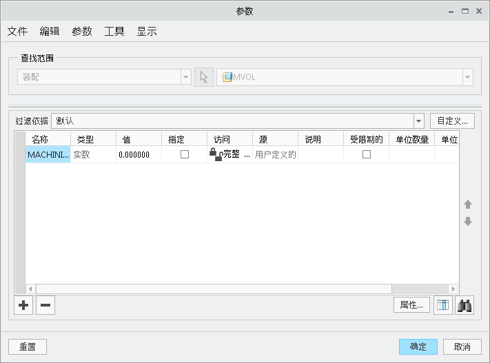单击“工具”(Tools) > “全局参数”(Global Parameters)。出现“参数”(Parameters) 对话框。将 MACHINING_COST 添加为全局参数并单击“确定”(OK)。