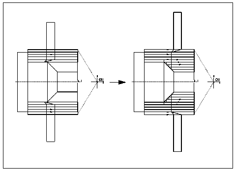 在下图中,左边的图显示进程中的“4 轴区域”车削刀具路径显示。右侧显示的是完成的刀具路径。