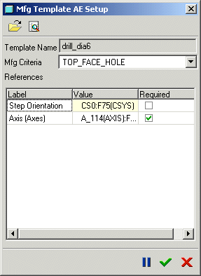 “制造模板注释元素设置”(Mfg Template AE Setup) 对话框打开。