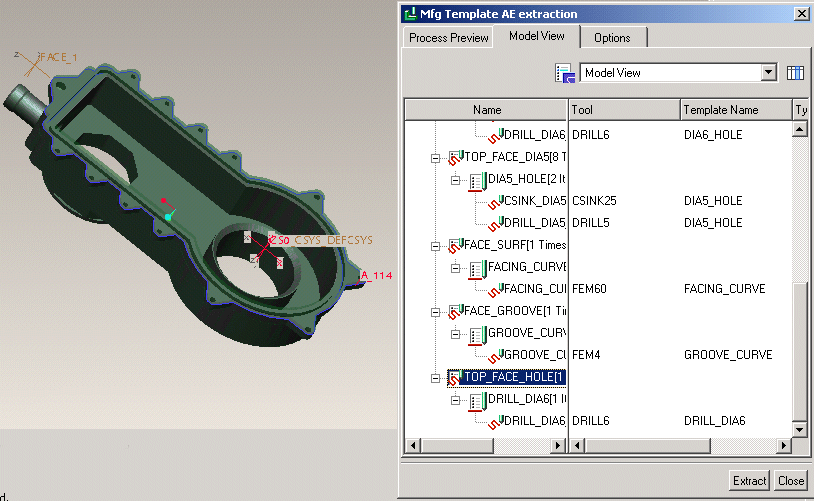 “制造模板注释元素提取”(Mfg Template AE Extraction) 对话框打开。单击