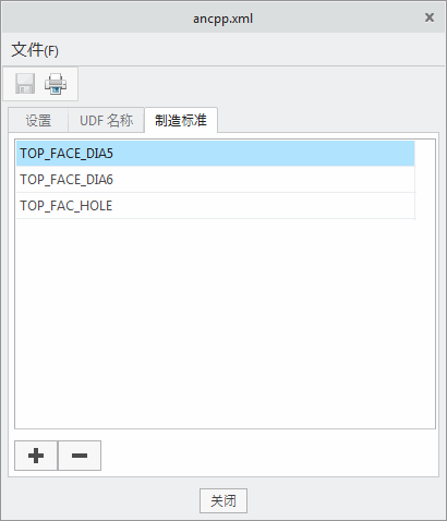 工艺表中的这一制造标准用法由配置选项 udf_mfg_info_setup_file 驱动。必须将此配置选项设置为指向一个扩展名为 .xml 的文件。此文件中存储着 UDF 制造标准名称映射。