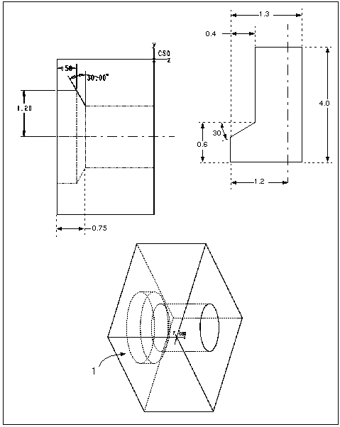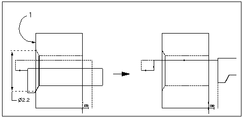 下图显示根据待加工几何设置“背面定位钻孔”刀具并为“背面钻孔”NC 序列指定起始和终止深度的一个示例。