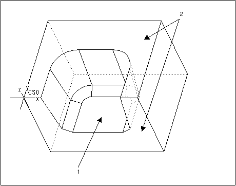 1. 通过聚合腔槽中的所有曲面来创建父“铣削曲面”,如下所示。选择曲面 (1) 作为种子曲面,选择顶部和前部曲面 (2) 作为边界曲面。