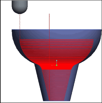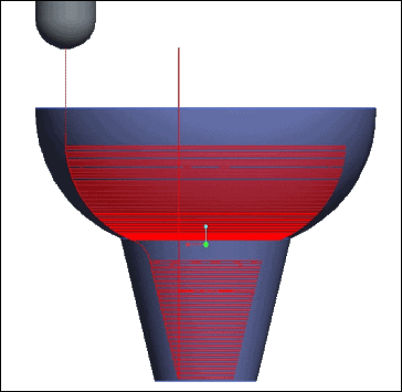 以下各图说明了为球-锥曲面过渡时,带和不带切割线铣削增强功能的刀具路径。