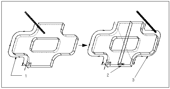 下图显示如何镜像以前的切削运动。