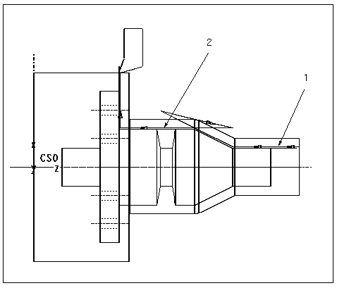 复选框进行的外表面“轮廓”车削。创建两个“自动切削”运动(1 和 2)。