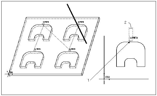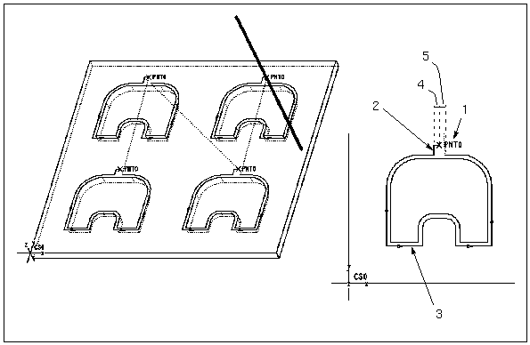 下图显示的分离运动利用“使用先前的”(Use Prev) 选项创建,并参考上图所示的 NC 序列。APPROACH_MOVE 参数设置为 NO。
