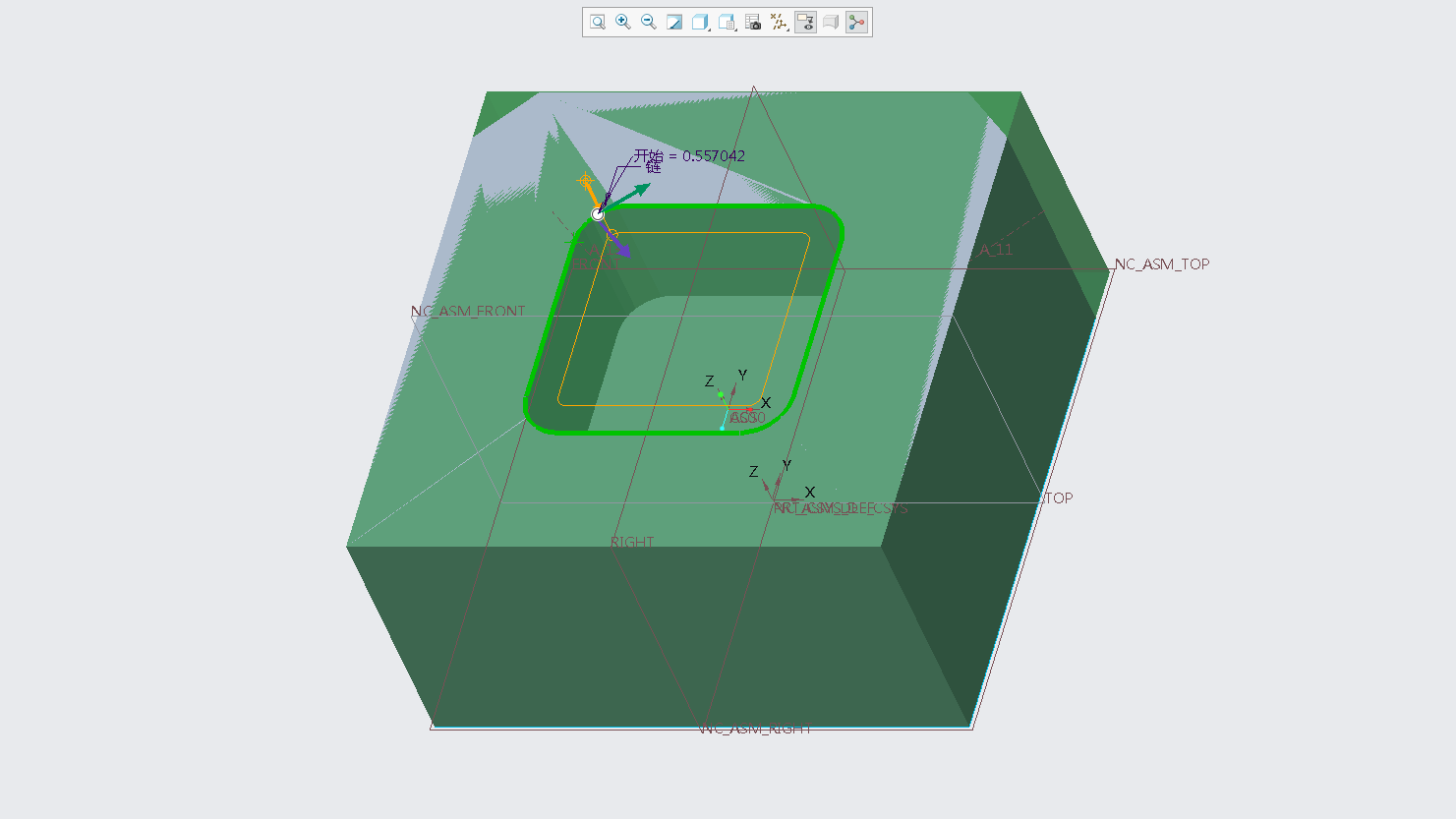 可使用“起点”(Start Point) 对话框更改起点的值。有关详细信息,请参阅主题“要放置轨迹铣削中封闭环的起点”。