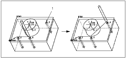 以与想要进行的孔加工相同的顺序选择孔轴,将其连接起来。选择轴时,当前刀具位置由一条平行于退刀平面的直线与该轴连接。每选择一次,将创建一个单独的“连接”段。注意,“连接”段的级别由前一段的终点的级别决定。