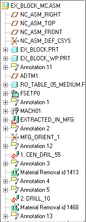 可在制造模型中创建注释特征和注释元素。这些注释特征和注释元素仅注释几何。在制造模型中创建的注释特征与该注释特征所跟随的 NC 特征相关。