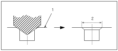 沉头孔直径是钻孔后该孔的最终直径,在起始曲面位置测量。沉头孔直径不能大于刀具直径。刀具参数 POINT_ANGLE 定义倒角角度。前两个规则用于自动查找适用的倒角。