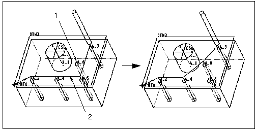 使用“自定义”(Customize) 对话框中的“重新定义”(Redefine) 按钮,可以重新指定迄今为止创建的任何穿行路径段。单击“重新定义”(Redefine) 后,出现“刀具运动”段的名称列表菜单。选择要重做的段。选定的段和随后的所有“刀具运动”段将临时消失。