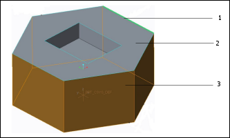 如果使用继承的“零件加工”模型,则使用 “模型”(Model) 命令只可从参考零件选择曲面。附加命令 “工件”(Workpiece) 将出现在菜单中,使用户可从工件选择连续曲面。