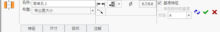 尺寸特征和平面曲面支持多种“方案”选项。对于这些特征,操控板中将显示“布置”(Scheme) 组合框,其中包括该特征的所有可用布置。添加尺寸特征 (如孔、轴、锥形孔等) 时,应用程序将检查 CAD 模型中与特征关联的参数尺寸,并自动选择与这些尺寸匹配的布置。您可以从组合框中选择另一种方案,这样,即可从 CAD 模型中手动选择所需的尺寸。有关详细信息,请参阅
