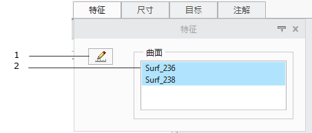 “曲面”(Surface) 列表 - 特征所参考的所有 CAD 曲面的列表。