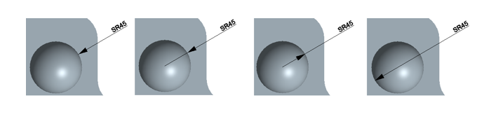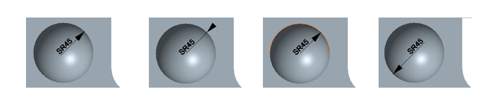在放置半径尺寸的过程中,箭头显示取决于指针位置。