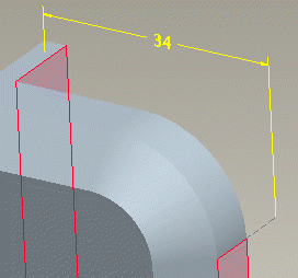 在下图中,Z 延伸线与尺寸界线距离最近的曲面边相连。