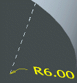 对于具有一个箭头 (无延伸) 的半径尺寸,单条 Z 延伸线将从参考延伸到尺寸箭头,如下图所示。