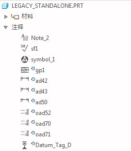 标志记号将显示在模型树和细节树中。将独立注释转换为注释元素后,系统将移除标志。