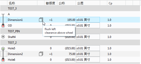 “单维度公差叠加汇总”(Summary of 1D Tolerance Stackups)