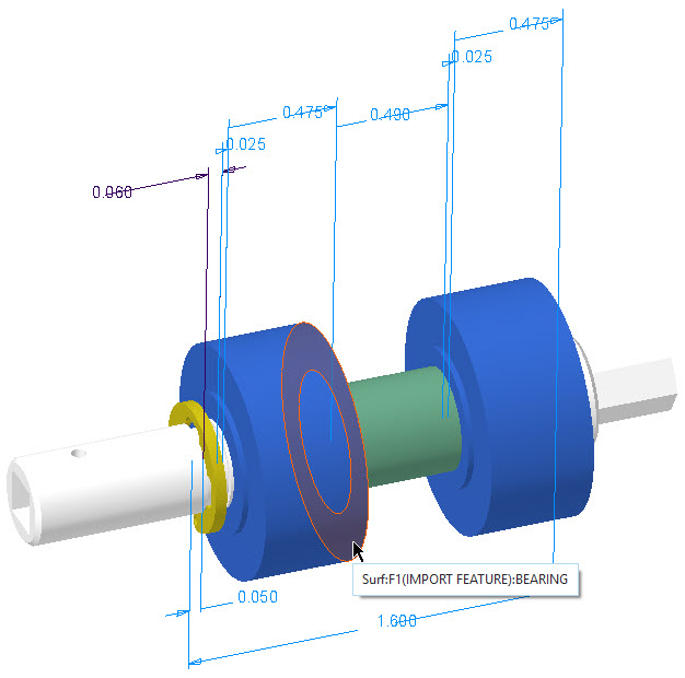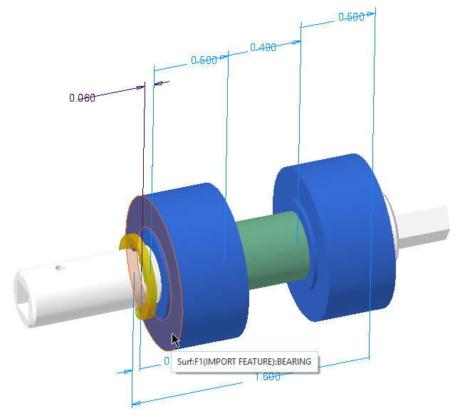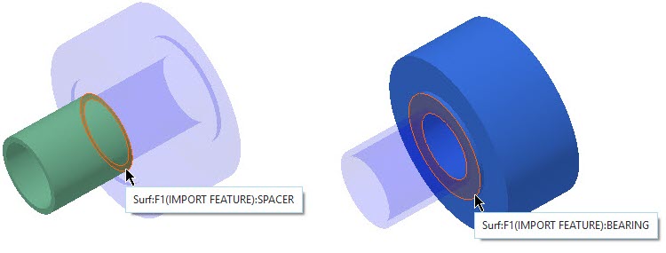 3. 选择 BEARING 零件另一侧的阶梯曲面。