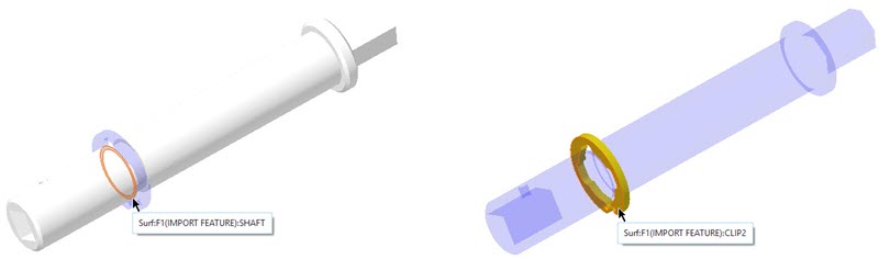 2. 选择距离 CLIP2 最近的 BEARING 的平面曲面。