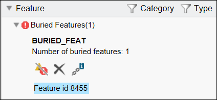6. 单击报告中某个检查的名称,以查看其详细信息和实例。例如,单击特征 id 时,相应的特征就会在模型上突出显示。
