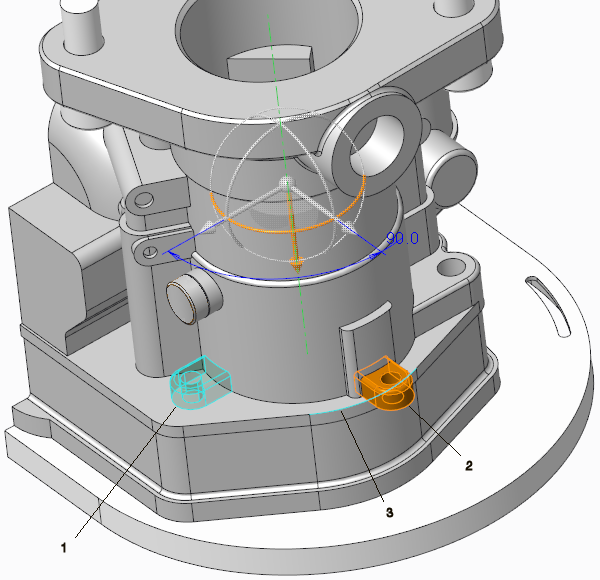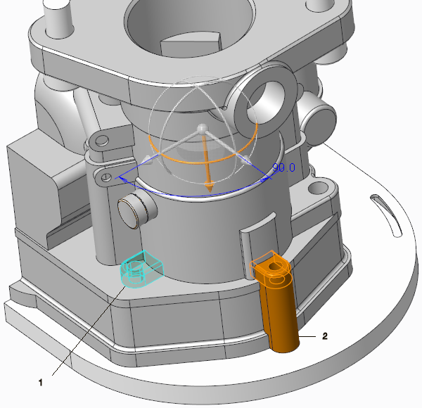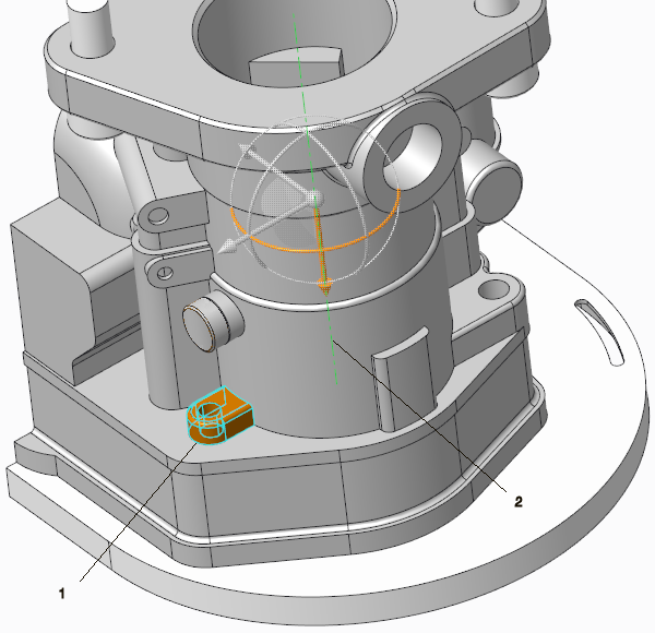 在下图中选择凸台,以便使用“移动”(Move) 工具使其围绕轴旋转。