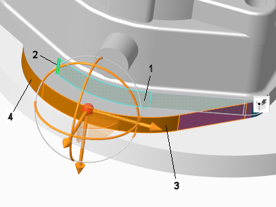 使用连接选项“延伸和相交”(Extend and intersect) 移动曲面。在这种情况下,当选定曲面移动时,其延伸并与原始曲面相交。