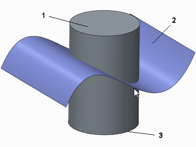 | 在此示例中,如果不选择曲线链,则可选择圆柱的顶部和底部曲面分别作为第一和第二枢轴。 |