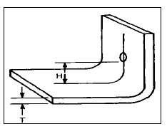 ![]() 其中, H = 最底边与孔之间的距离 T = 钣金件厚度 R = 折弯半径 最小 H = 1.5*T+R |