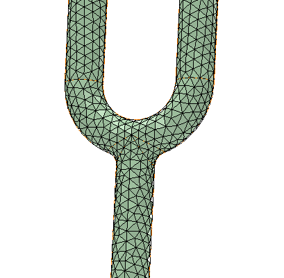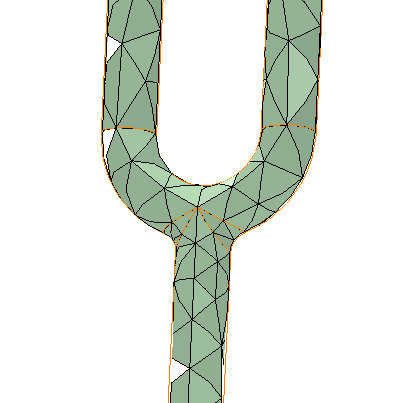 在以下示例 (仅限演示目的) 中,图 1 显示一个以 180 度“曲率法向角度”(Curvature normal angle) 生成的网格,图 2 显示一个以 30 度“曲率法向角度”(Curvature normal angle) 生成的网格。